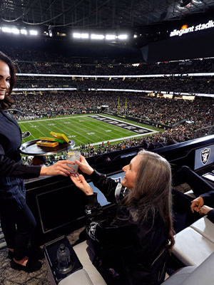 Don't miss the chance to elevate your gameday experience with a newly created sideline suite on the 100 Level of Allegiant Stadium inside the Modelo Cantina Club and Twitch Lounge.